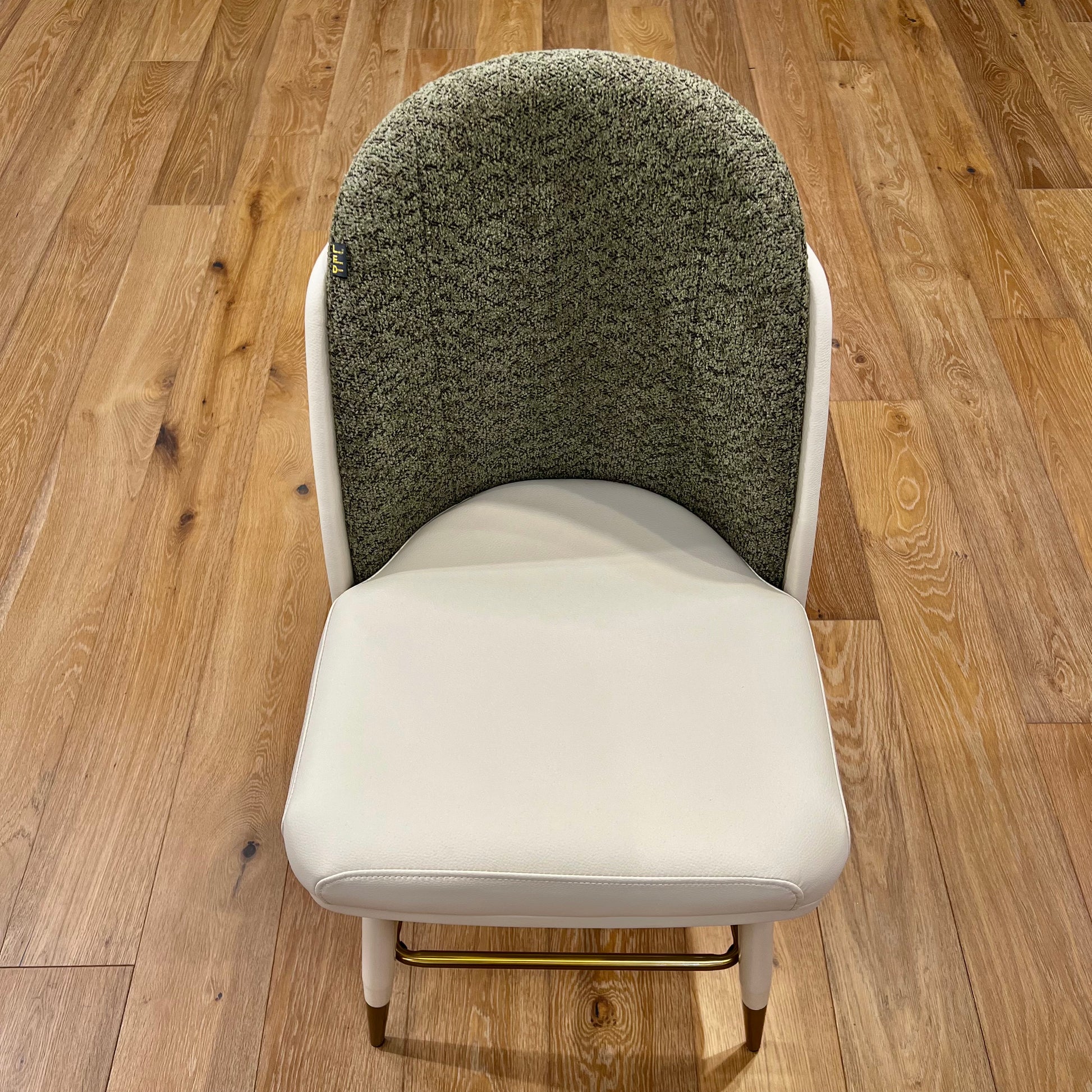 This Leather Bar Stool combines an elegant beige seat with a green backrest, crafted from durable leather for lasting comfort and support. Measuring 2.1 feet from floor to seat, it offers a perfect height for bar or kitchen counters. Its refined design delivers both functionality and style, making it a sophisticated addition to any modern interior.