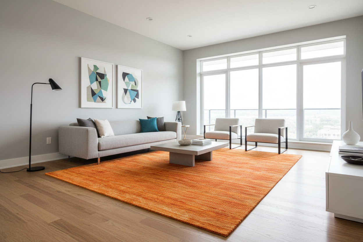 506 - Modern Handmade Pure Pure Silk Rug Golden Orange/Yellow