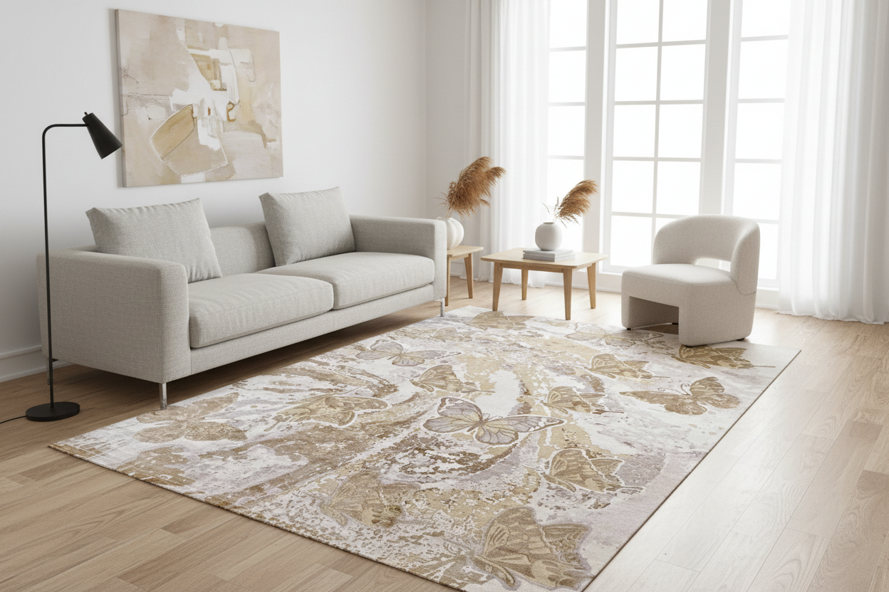 501 - Nepal Modern Handmade Bamboo Silk Butterfly Rug design by Abram Imports